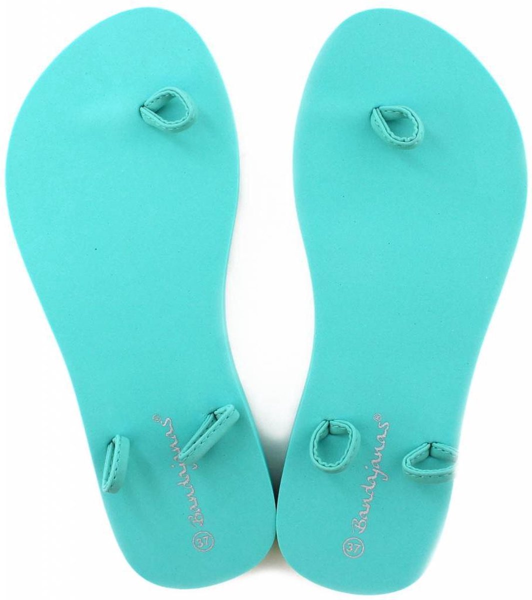 Creëer je eigen slippers in het mintblauw met deze haakset van Hoooked.