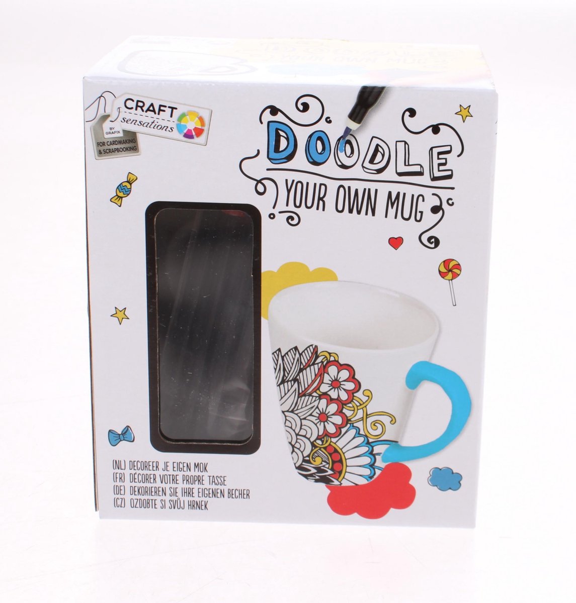 Craft sensations decoreer je eigen mok Maak van theedrinken een feest met deze stijlvolle mok van Craft sensations. Je kunt de mok helemaal naar eigen smaak versieren met de bijgeleverde pennen. Vaatwasmachinebestendig. Specificaties: Kleur mok: wit Kleur pennen: geel, rood, blauw, zwart Geslacht: junior Materiaal: keramiek Afmetingen mok: 11 x 8 cm Afmetingen verpakking: 13 x 10 x 16 cm (L x B x H) Leeftijd: vanaf 4 jaar Inhoud: 1 Mok 4 pennen 1 Handleiding