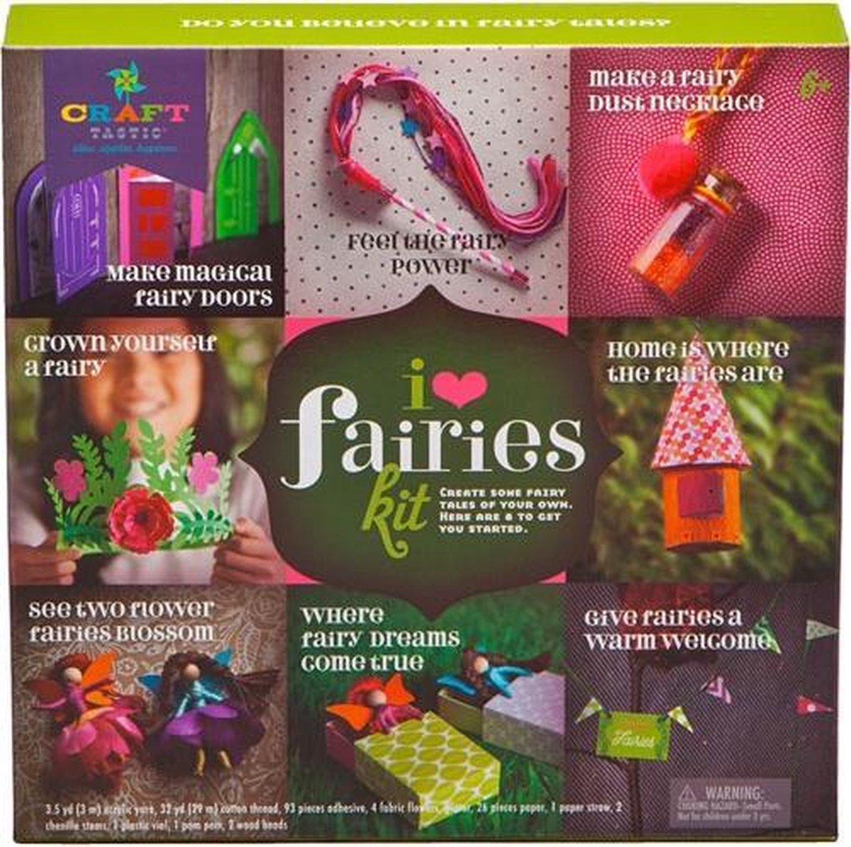 Met deze kit maak je attributen specifiek voor feeën. Feeënketting, feeënhuis, feeënkroon, feeënstaf... kinderen houden van deze 8 eenvoudige werkstukken. Een leuke manier om de magische en mythologische wereld van feeën in uw huis te halen. Vanaf 6 jaar. Afmetingen doos: 26 x 26 cm