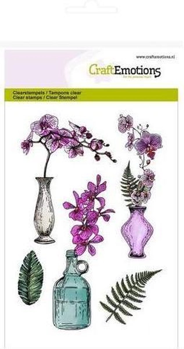 CraftEmotions stempel A6 - orchidee. vazen en fles