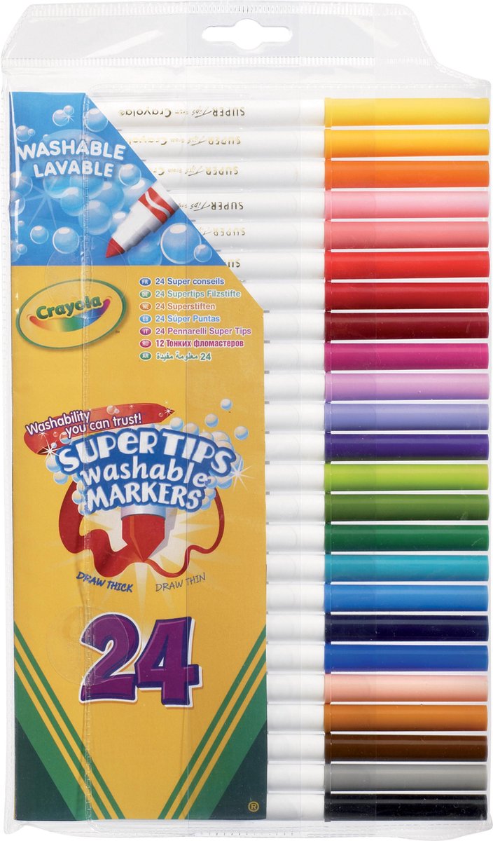 Afwasbare viltstiften met een dunne punt, waarmee je ook brede lijnen kunt tekenen. Zachte intense kleurafdruk voor goede bladbedekking. Kleurt tot meer dan 185 m.