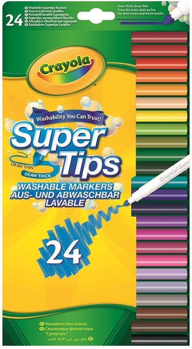 Hoge kwaliteit Crayola viltstiften met superpunt. De punten van de stiften zijn niet weg te drukken. Met de speciale superpunt kun je zowel dikke als dunne lijnen tekenen. Ideaal om zowel grote als kleine vlakken in te kleuren. De inkt van deze stiften is afwasbaar van huid en kleding. Geschikt voor kinderen vanaf 3 jaar. - Beschikbaar in 24 heldere en intense kleuren. - Inclusief geventileerde veiligheidsdop. - Extra lange levensduur. - Afwasbaar van huid en kleding.