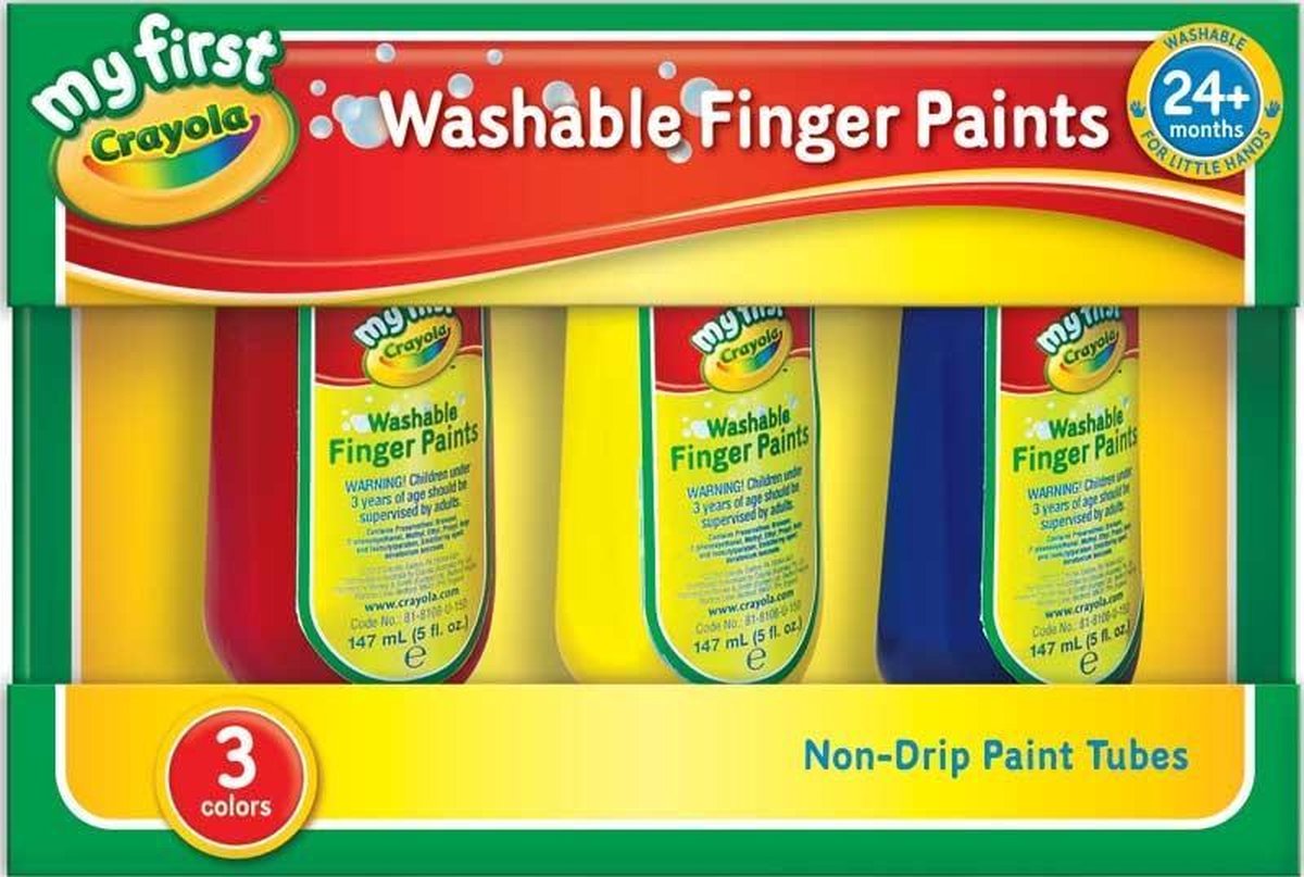 Gebruik je handen, stempels of een penseel om je creativiteit de vrije loop te laten gaan Set van 3 verschillende felle kleuren Crayola Mini Kids afwasbare vingerverf voor de allerkleinsten. De verf zit in handige knijpflacons waarmee je goed kunt doseren. Daarnaast hebben de flacons een handige anti-lek dop. De verf is veilig voor kleine kinderen, glutenvrij en makkelijk afwasbaar van huid en kleding. Zo kunnen peuters veilig spelen en kleuren ontdekken. De flacons bevatten 147 ml verf per stuk. In deze set zitten de volgende kleuren vingerverf: Rood, Geel, blauw. Kenmerken: • Niet nodig om een penseel te gebruiken. • Zorgt voor nieuwe sensaties en gemakkelijke creatiemogelijkheden, kleuren ontdekken zonder accessoires te gebruiken! • Afwasbare vingerverf, op maat van de allerkleinsten vanaf 2 jaar. • Uitstekend afwasbaar van handen en huid. • Eenvoudig uitwasbaar uit textiel. Specificaties: • Afwasbare verf. • Knoeivrije tubes om het morsen tegen te gaan. •
