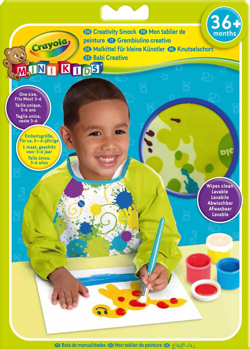 Vrolijk gekleurd verfschort met lange mouwen voor kindjes vanaf 36 maanden! 100% polyester en eenvoudig schoon te vegen na elk gebruik. De verfschort is gemakkelijk verstelbaar voor kinderen tot en met 6 jaar. - Vrolijk verfschort met lange mouwen. - 100% polyester, eenvoudig schoon te vegen. - Verstelbaar.