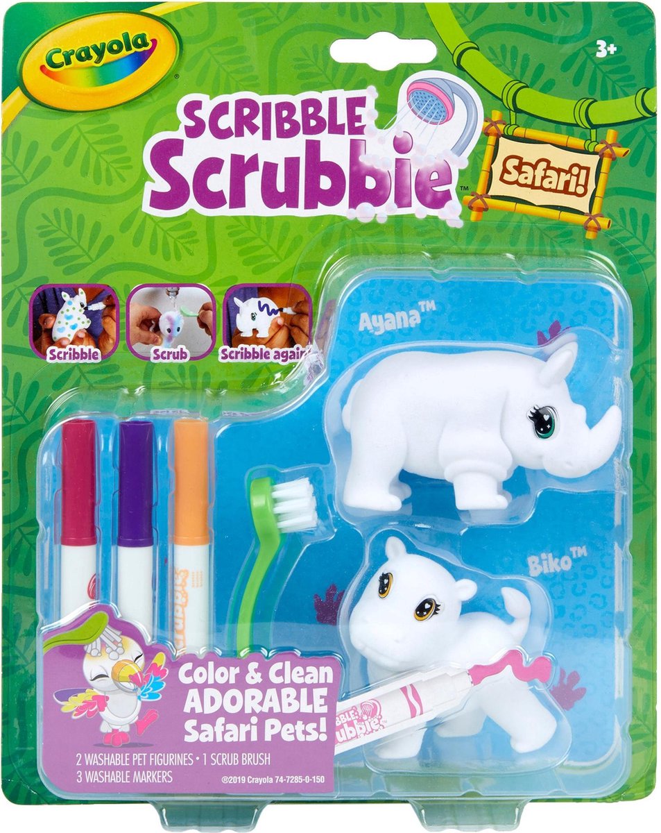 Breid jouw Crayola Washimals collectie uit met deze wilde safari dieren! Kleur de dieren in met de viltstiften. Was de dieren vervolgens schoon met water. Kleur opnieuw! In deze set vind je Biko het nijlpaard. Biko houdt van water ook al kan hij nog niet zo goed zwemmen. Daarnaast vind je in de set Ayana de neushoorn met haar machtige hoorn op haar neus! Deze Washimals set bevat drie afwasbare viltstiften in de kleuren roze, paars en bruin en een schoonmaakborsteltje. Over Washimals Kleur, verzorg en was je schattige kleine huisdieren, daar staan de Crayola Washimals™ voor! Crayola brengt een reeks van verzameldieren om in te kleuren en te personaliseren. Geef je lievelingsdieren een kleurrijk design! Daarna gaan de Washimals dieren in bad waar ze schoon gespoeld worden met water. Het badje werkt echt als een douche; even pompen waardoor de Washimals-figuren nat worden, schrobben met de borstel, naspoelen, laten drogen en opnieuw beginnen. Zo zijn er eindeloze mogelijkheden om je
