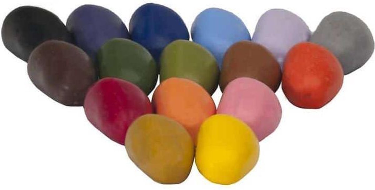 16 kleuren Crayon Rocks in een rood velours zakje. Deze ecologische krijtjes zijn gemaakt op basis soja-wax en minerale kleurstoffen. In het zakje zitten de kleuren red, pink, blue, sky, green, grass, dark yellow, light yellow, orange, peach, purple, light purple, brown, tan, black, gray. Fijne krijtjes die de pengreep stimuleren bij jonge kinderen, laag over laag gebruikt kunnen worden en ook als marker op bijv textiel heel handig zijn. Wasbestendig tot 60C. Geschikt VA 3 jaar . Tag: Crayon Rocks.