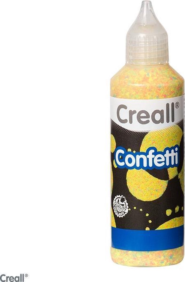 Creall confettiverf Op waterbasis. Voor het decoreren van diverse voorwerpen met vrolijke kleuren. Direct uit het flesje te gebruiken. Inhoud: 80 ml