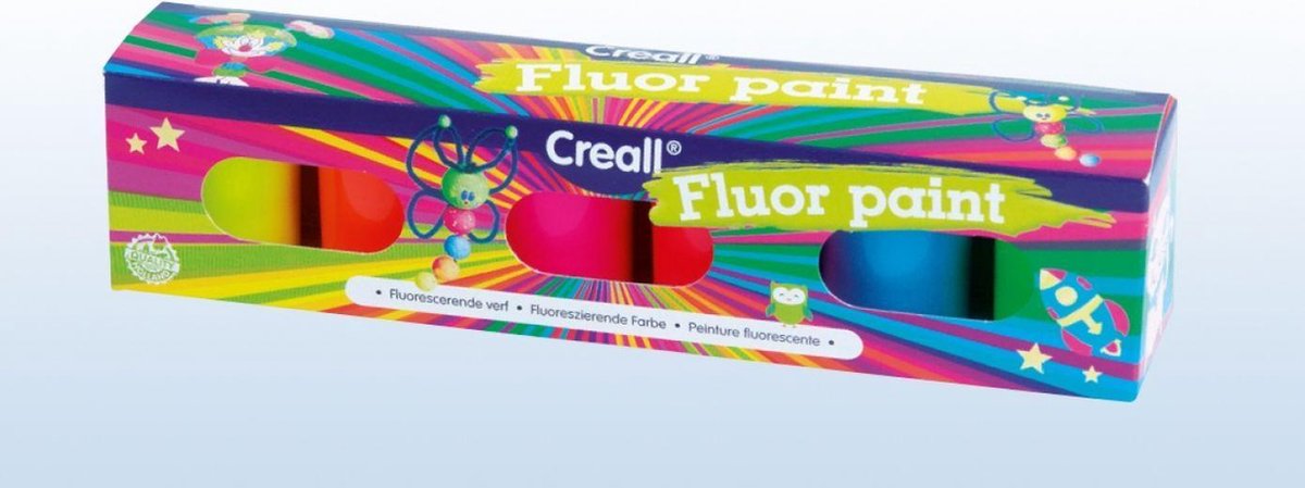 De Creall Fluorpaint is een verf op waterbasis. Gebruik je creativiteit en maak de mooiste schilderingen Inhoud 6x20ml. Geschikt voor kinderen vanaf 3 jaar.