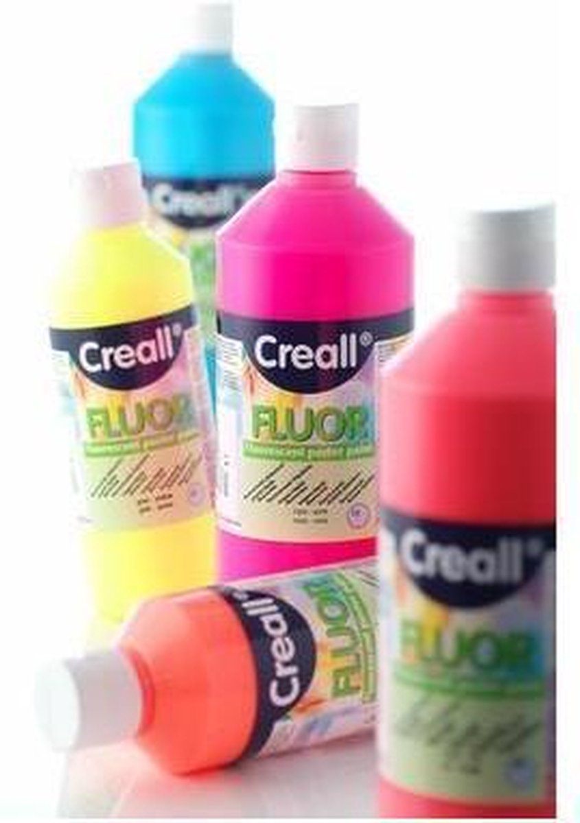 Creall Fluor - plakkaatverf (blacklight) wit 250ml Fluorescerende plakkaatverf op waterbasis, gebruiksklaar.