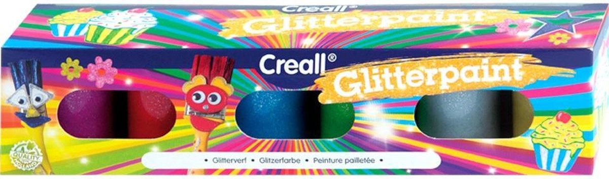 Deze Creall glitterverf kun je voor zowel karton als foam gebruiken. In de verpakking zitten 6 potjes met verschillende kleuren glitterverf. Geschikt voor kinderen vanaf 3 jaar.