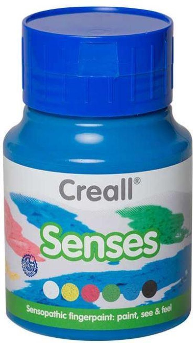 1 grote pot á 500ml vingerverf in de kleur blauw Creall Vingerverf biedt een unieke kleurbeleving voor kinderen: verven, zien en voelen. Bevordert de handmotoriek en de tastzin bij Kinderen. Ook zeer geschikt voor slechtziende kinderen. Voldoet aan de Europese veiligheidsnorm EN71-7 De verf heeft een bittere smaak om in mond stoppen door kinderen tegen te gaan.