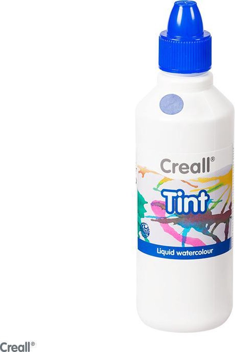 Creall-tint Kleur: Donker Blauw Inhoud: 500ml Transparante waterverf/tekeninkt Gebruiksklaar Grote kleurkracht Briljante kleuren Ean-code: 8714181040084 Geschikt voor airbrush- aquareltechnieken, spatten en transparante tekeningen. Te combineren met Creall-waxy, Creall-oily en Creall-vernis