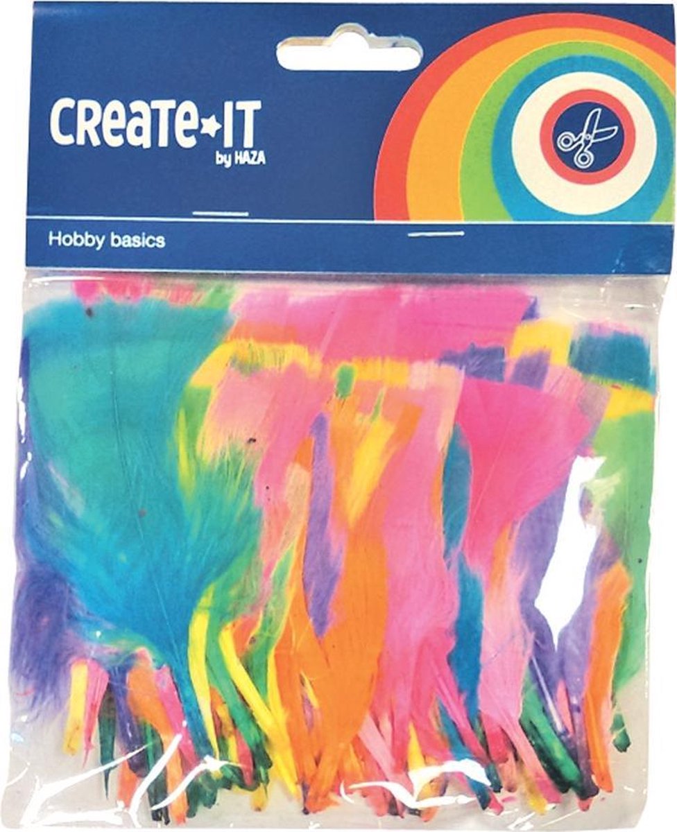 24 vrolijk gekleurde veertjes waarmee je een tekening of knutselwerkje kunt versieren