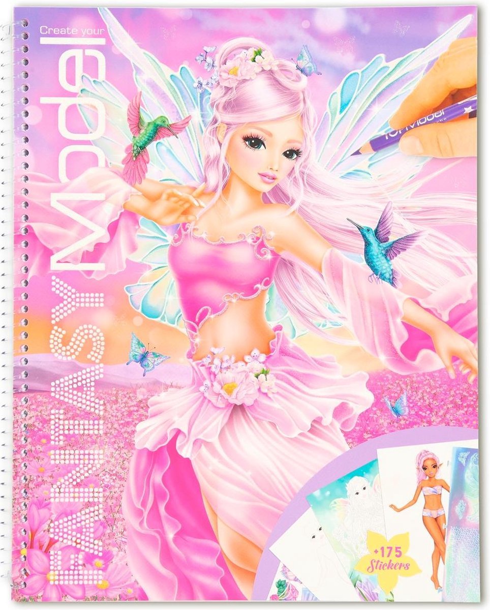 Dit spiraal gebonden boek van FANTASYModel heeft alles om je fantasie vleugels te geven: 78 pagina's om in te kleuren of te beplakken, 2 stickervellen en een sjabloon om effecten te tekenen. Een fantastisch boek vol teken- en plakplezier!
