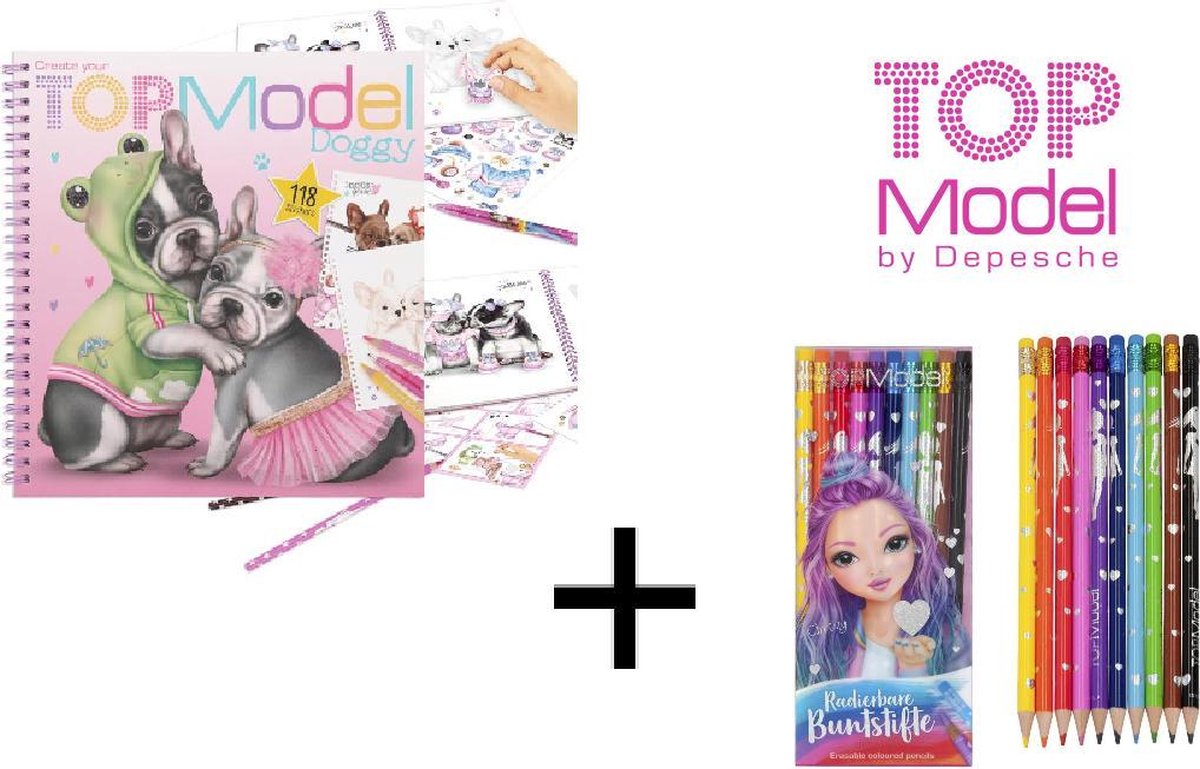 Eigenlijk alleen maar WOEF, uh, WOW! Dit kleurboek is echt puppy schattig! Op 82 pagina's wachten heel veel afbeeldingen van honden erop om met kleur tot leven gebracht te worden. En dat natuurlijk samen met de 118 bijgeleverde stickers. Dus, in je mand en tekenen, plakken en kleuren! Lengte: 22 cm Breedte: 21 cm Hoogte: 1.5 cm Gewicht: 0.323 kg Leeftijdsadvies: 6 +++++ Nu wordt het kleurrijk: met deze tien kleurpotloden worden alle TOPModels, hun coole outfits en je eigen fantasievolle tekeningen schitterend! En het beste: dankzij de gum die er als topper opzit, kun je elke foutje makkelijk weer uitgummen! So cool! Kleuren: geel, oranje, rood, roze, paars, donkerblauw, lichtblauw, groen, bruin & zwart. Lengte: 0.9 cm Breedte: 8 cm Hoogte: 19.2 cm Gewicht: 0.072 kg Leeftijdsadvies: 5