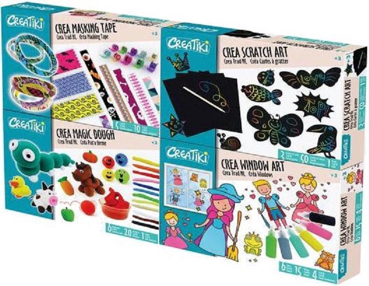 Creatiki Maskeertape Creatiki Kraskaarten Maxi Pack Groot pak met allerlei creatieve kraskaarten. Snij je vormen uit, kras ze in mooie motieven of kleuren. Of ga gewoon aan de slag met de sjablonen die er bij zitten. Creatiki Magische Boetseerklei Creatiki Window Art