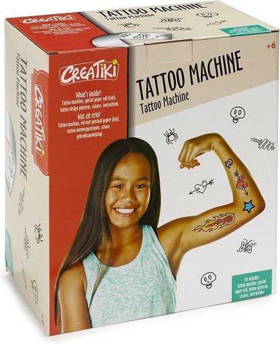 Creëer je eigen stoere en originele tattoos met deze super tattoo machine. Je ontwerpt unieke tattoos met speciaal tattoopapier en bijgeleverde patronen. Maar je kan ook je creativiteit gebruiken en je eigen motieven te maken. Verfraai je stijl met kleurrijke tatoeages.