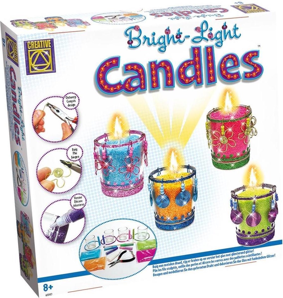 Ontwerp en maak prachtige kaarsen met deze set van Creative. Wordt geleverd met lont, zodat de kaars ook echt kan branden. Versier het glas met de glitters, vul het glas met wax en brand het kaarsje. Geschikt voor kinderen vanaf 8 jaar.
