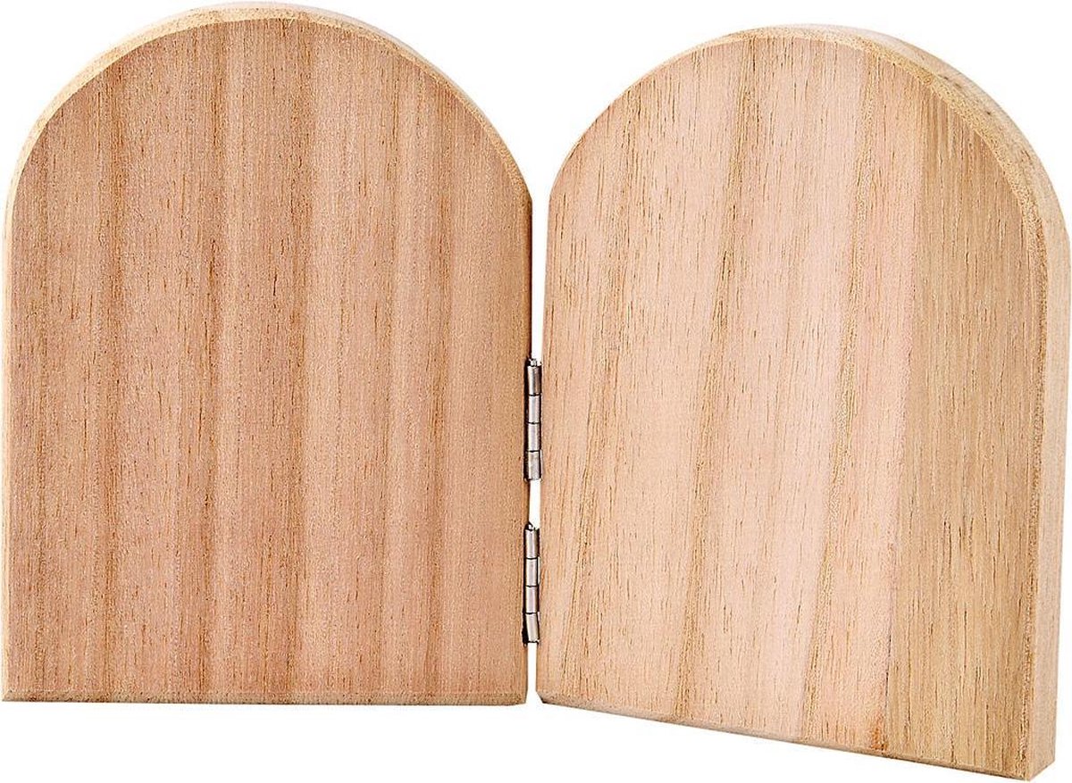 Creative houten tweeluik Tweeluik ikoon gemaakt van hout en heeft metalen ophangingen. Leuk om een spiegel of andere leuke dingen tegenaan te zetten. Specificaties: Geslacht: junior, unisex Materiaal: hout Kleur: blank Afmetingen: 11 x 17 cm (LxB) Leeftijd: vanaf 4 jaar