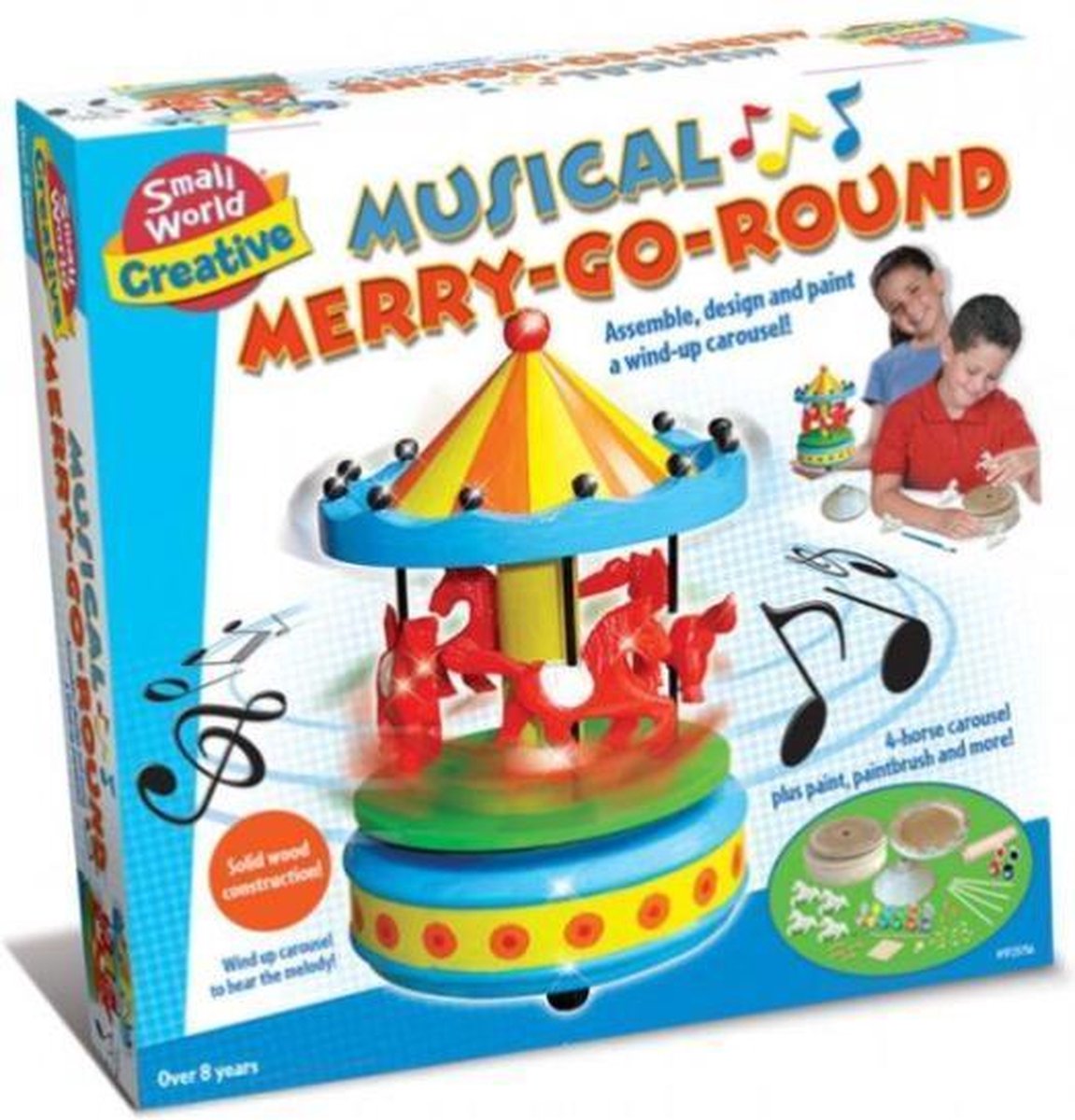 Stel zelf deze opwindbare paardenmolen samen. Ontwerp en schilder de molen zoals jij het zelf wil! Bevat alle onderdelen nodig om de paardenmolen te maken, plus 8 verfpotjes, verfborstel, schuurpapier. Geschikt voor kinderen vanaf 3 jaar. Lijm is nodig om de molen samen te stellen, is niet inbegrepen.