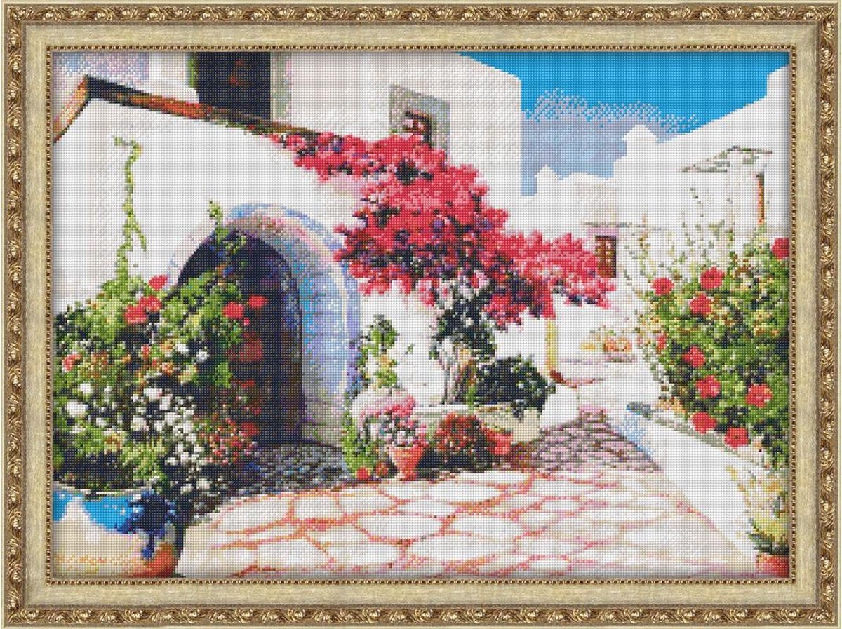 Kit contains: - pre-printed canvas, with special adhesive layer and peel-off, protective film; - 2.5X2.5 mm acrylic rhinestones (crystals), with 9 edges, for better and brighter light reflection; - tweezers and crystal box. Size: 70?50