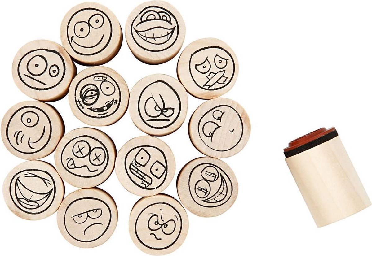 Rubber stempels op houten blok met verschillende gedetailleerde bloemen en bladeren afbeeldingen.Rubber stempels op houten blok met diverse gedetailleerde afbeeldingen.