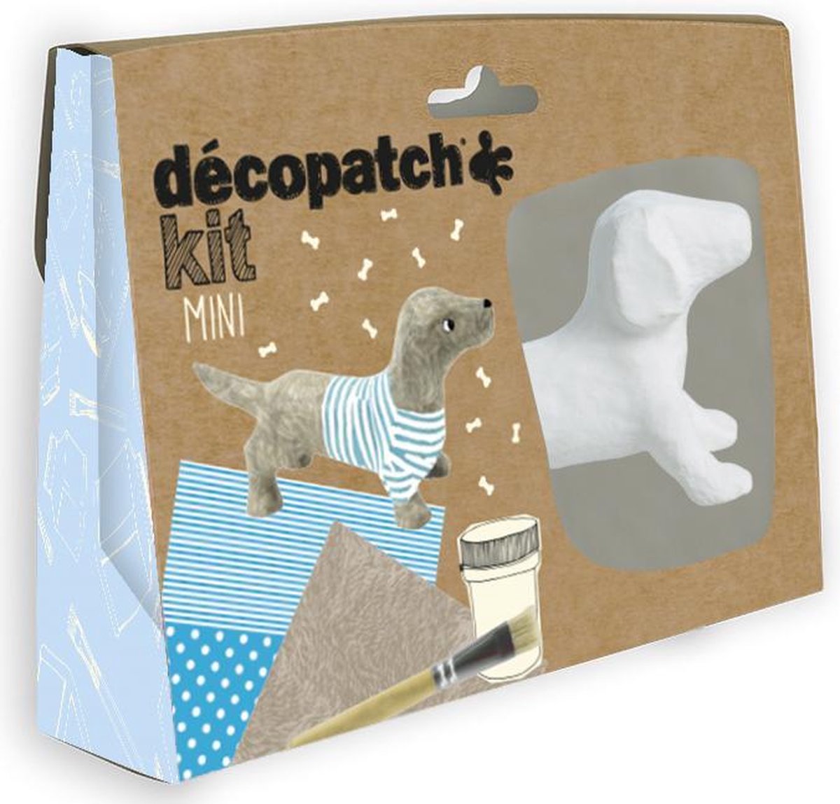 Complete set met volgende toebehoren : * 1 ecoshape figuur, wit * verschillende motieven decopatch papier * 1 flacon 137 gram decopatch lijm * 1 plat varkenshaar penseel * gebruiksaanwijzing op de achterkant van de verpakking