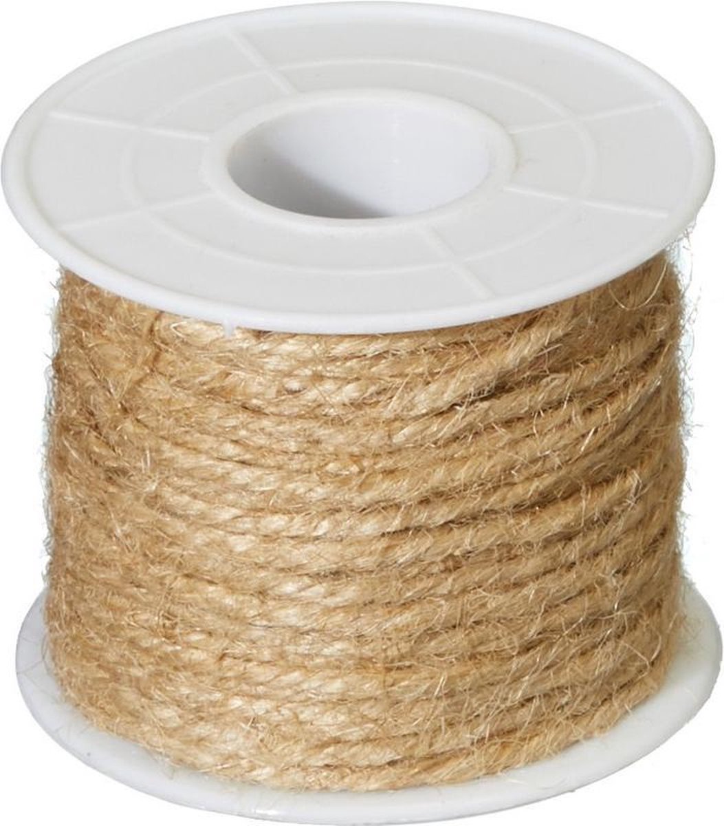 Hobby/decoratie jutegaren naturel rol/spoel van 20 meter. Lengte: 20 meter. Materiaal: jute. Creatief hobby materiaal / decoratietouw. Cadeau verpakkingsmateriaal decoratie touw naturel kleur.