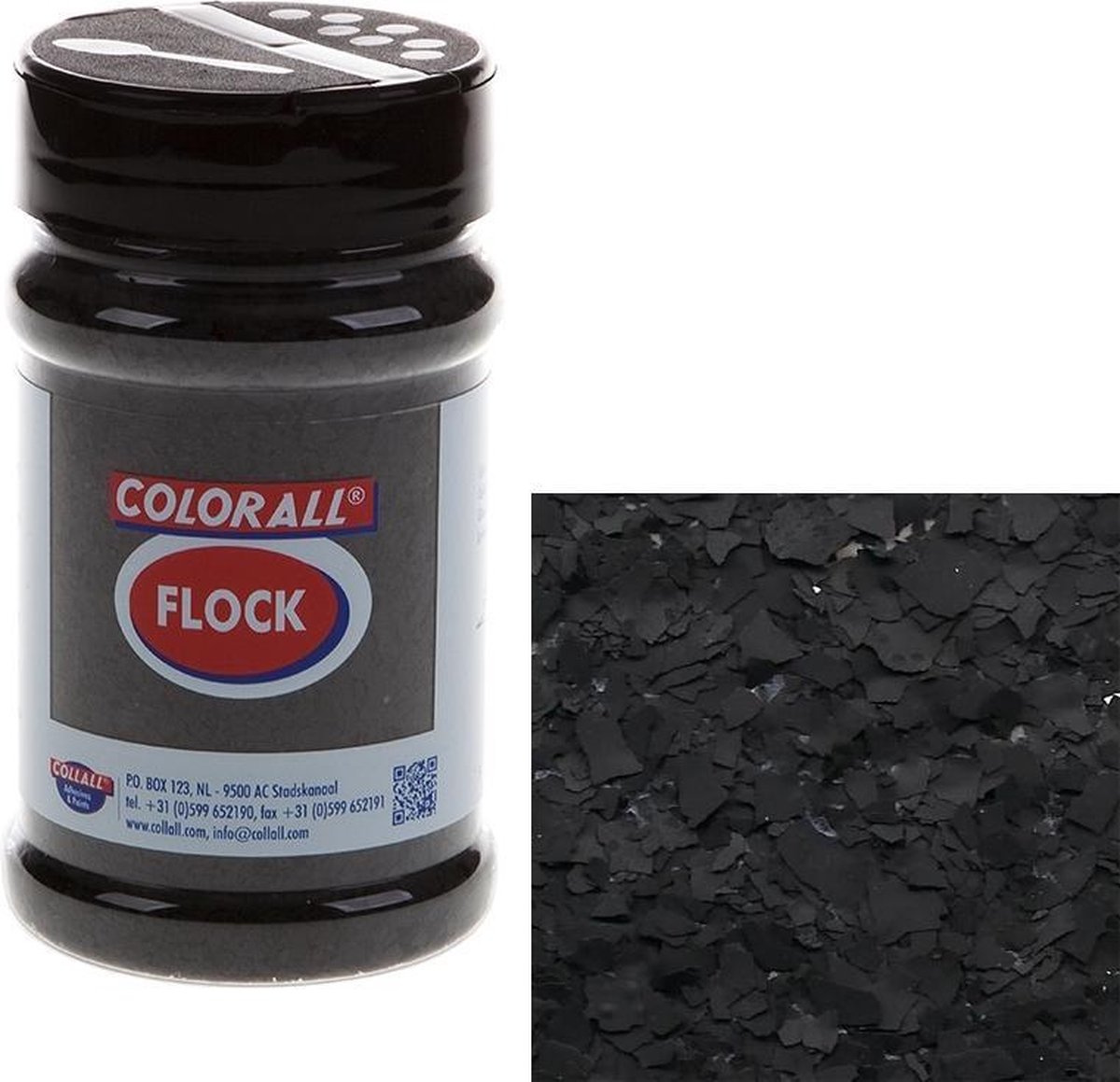 Colorall FLOCK kan op bijna iedere ondergrond aangebracht worden. Het is zeer slijtvast en gemakkelijk te reinigen. FLOCK geeft een natuursteen effect! Breng een laag verf of Colorall Vernislijm aan. In deze nog natte verf of lijm strooit u de verfsnippers. Naarmate je van grotere hoogte strooit verdelen de verfsnippers zich gelijkmatiger (als sneeuw). De FLOCK verfsnippers kunnen met de hand vermalen worden om nog fijner te kunnen werken. Na droging voorzichtig met een schuurspons de losse delen wegschuren. Hierna kunt u met Collall Decoupagevernis / Collall Deco Sealer het geheel afwerken. Sterk zuigende materialen een keer voorbehandelen met bijvoorbeeld Colorall Gesso. Doordat de vlokken poreus zijn zuigen ze de kleur van de verf/ lijm gedeeltelijk op. FLOCK geeft op iedere kleur verf dus steeds een ander resultaat!
