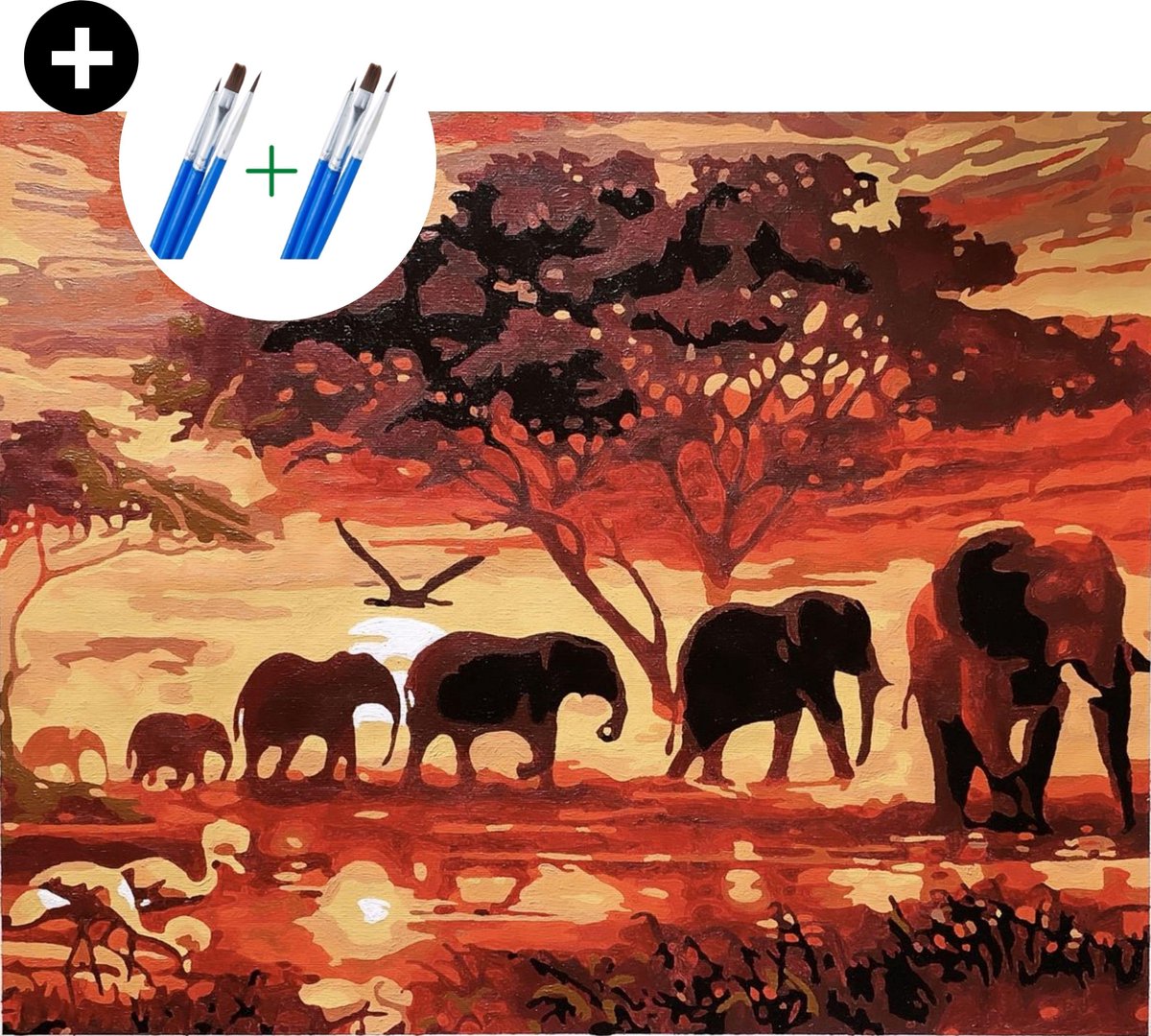 deeds.® - Schilderen op nummer volwassenen - Paint by number - Verven op nummer - Olifant - Dieren - Landschap - DIY