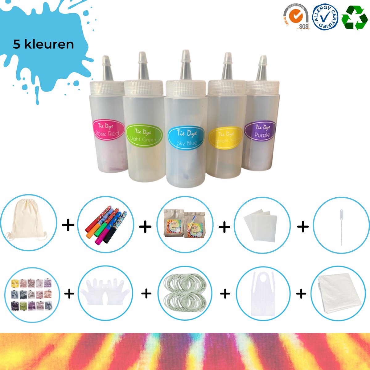 Met deze uitvoerig zelf geteste en zorgvuldig samengestelde, professionele DIY Tie-Dye verf van deeds. voel je je net een echte modeontwerper! Laat je creativiteit de vrije loop met deze Tie Dye verf en maak oneindig veel leuke projecten geheel naar wens. Wij zorgen voor alle benodigdheden, accessoires met inclusief een voor-en-nawas behandeling waardoor jouw Tie-Dye projecten en kledingstukken optimaal hechten en niet afgeven of vervagen! Verzekerd van premium mode kleurstof verfpoeder De Alles-in-ÉÉn deeds. Tie-Dye verf bevat 5 verschillende permanente mode kleurstof verfpoeders van hoogwaardige kwaliteit en zijn SGS gecertificeerd waardoor je verzekerd bent van Tie-Dye poeder die aan de kwaliteitseisen en normen voldoen. De voordelen van de deeds. Tie-Dye verf: SGS gecertificeerd premium mode kleurstof verfpoeder Voor-en-nawas behandeling voorkomt afgeven en vervagen Uitwasbare stift voor het maken van figuurtjes Inclusief canvas rugtas Nederlandstalige, duidelijke