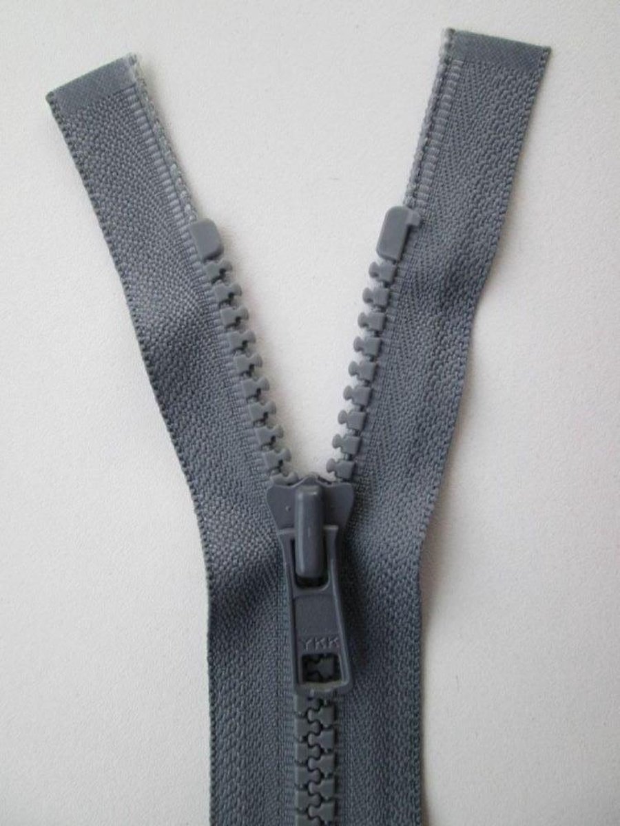 Een Donker Grijse deelbare bloktand rits voor bijvoorbeeld een jas of vest. Het is een 100% kunststof rits. Het is een deelbare rits met een lengte van 80 cm.