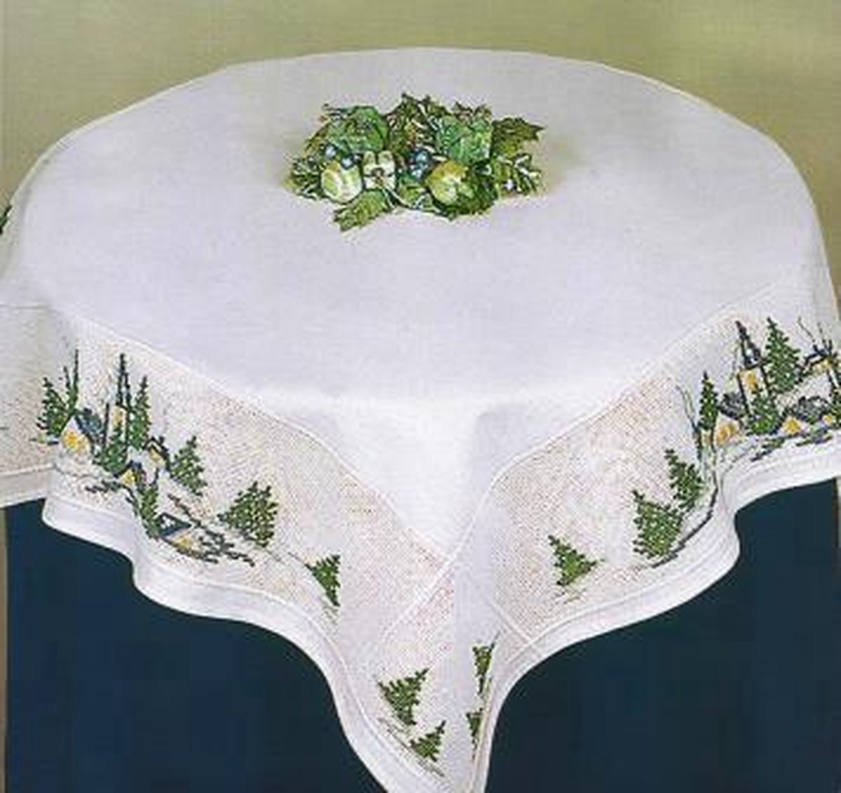dekservet 85167 dorp in wintersfeer, wit met aida rand