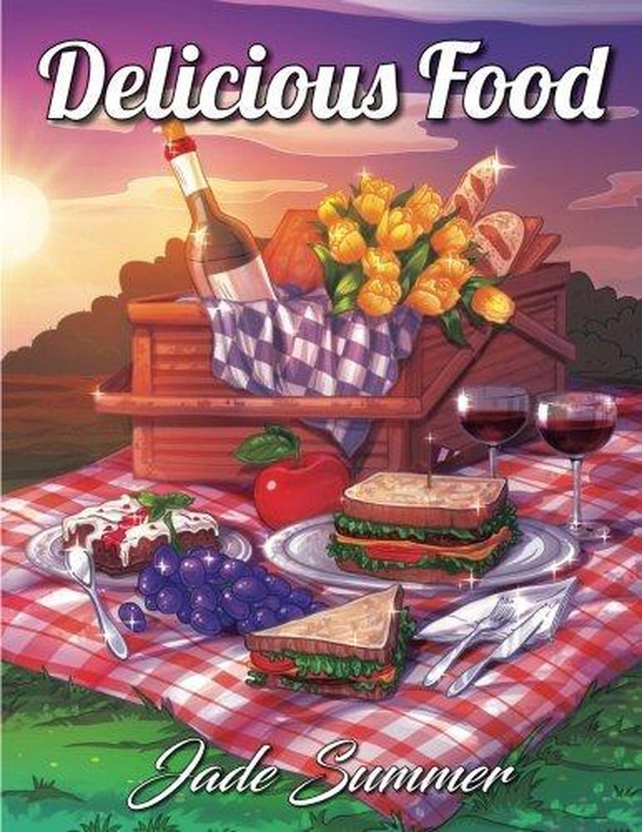 An Adult Coloring book / kleurboek voor volwassenen with Decadent Desserts, Luscious Fruits, Relaxing Wines, Fresh Vegetables, Juicy Meats, Tasty Junk Foods and more! 25 unique images (double images 2 x 25)ISBN 9781717472717, Engelstalig, paperback, eenzijdig bedrukt, 108 pagina's, 27 april 2018