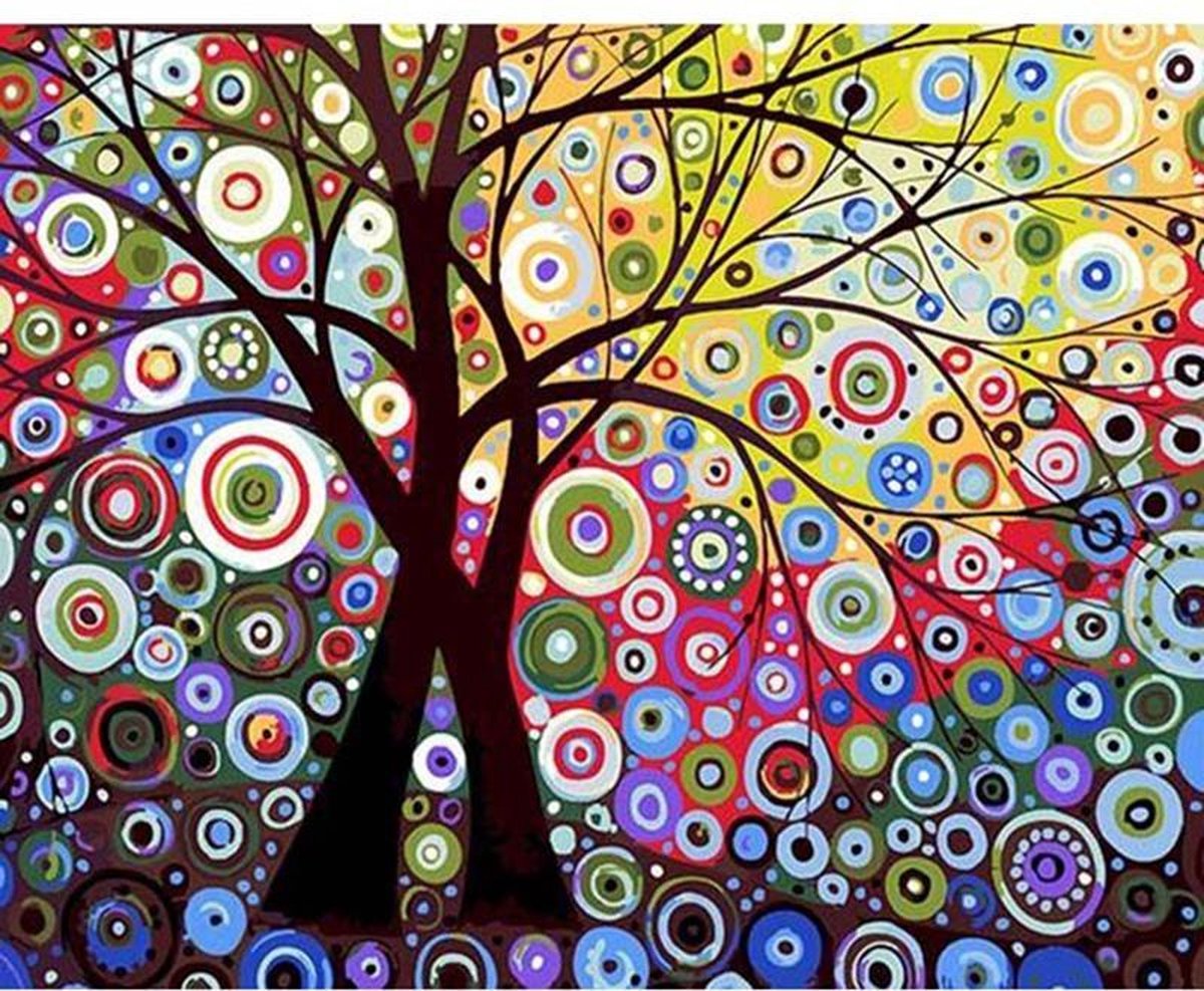 Delki® Abstracte Boom Schilderen Op Nummer Volwassenen - 40x50 cm - Houten Penselen - Met Frame