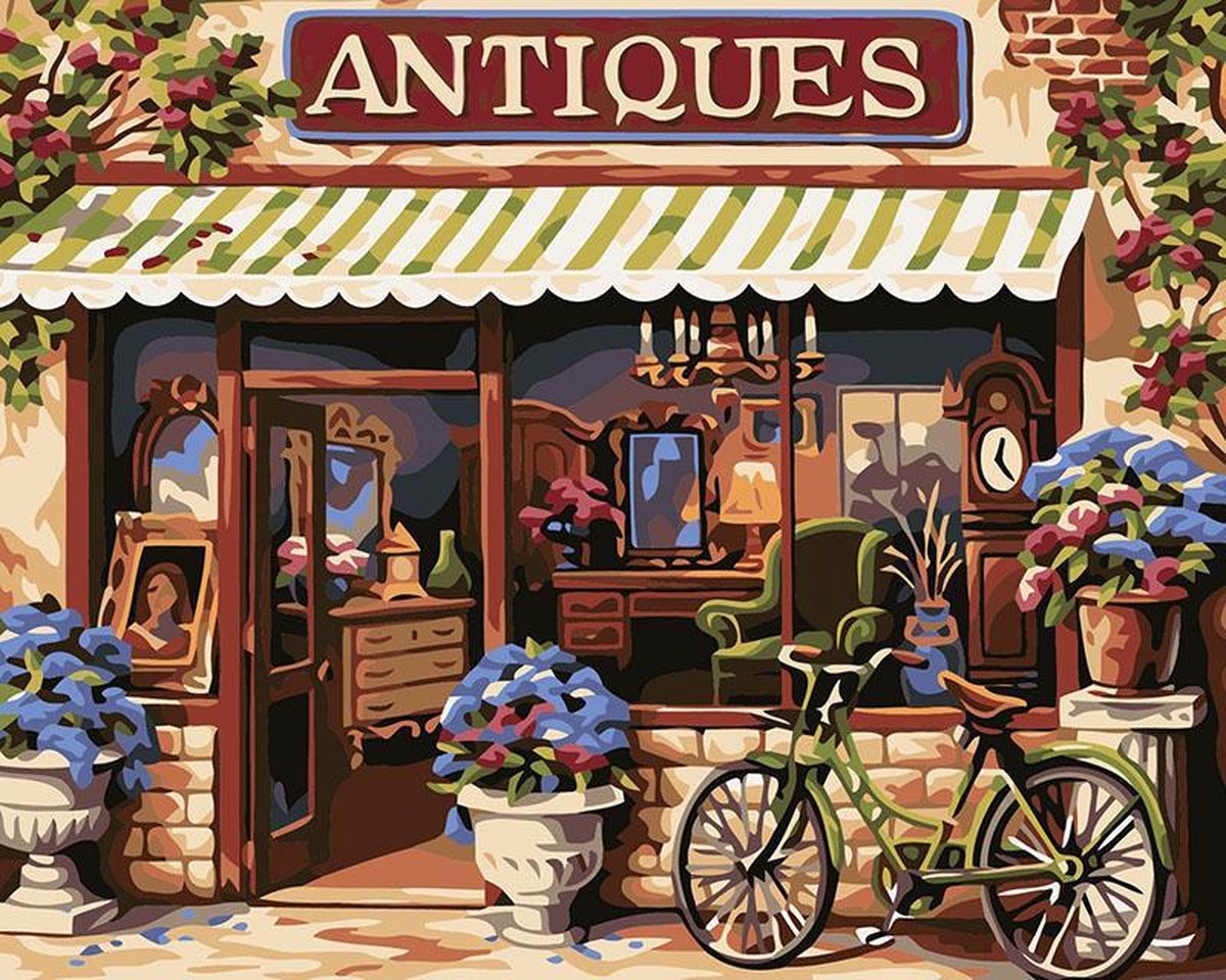 Delki® Antiek Zaak Schilderen Op Nummer Volwassenen - 40x50 cm - Houten Penselen - Met Frame