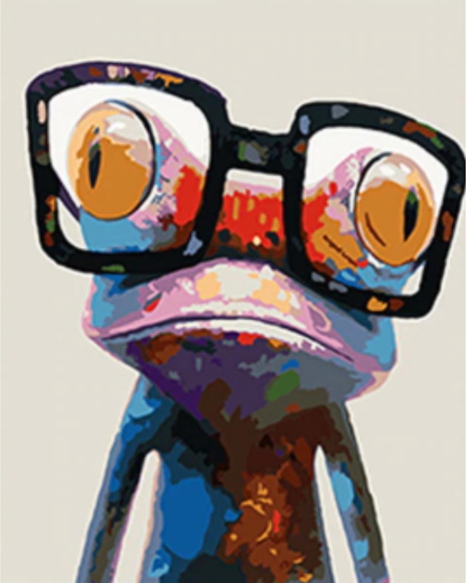 Delki® Bril Kikker Schilderen Op Nummer Volwassenen - 40x50 - Houten Penselen - Met Frame