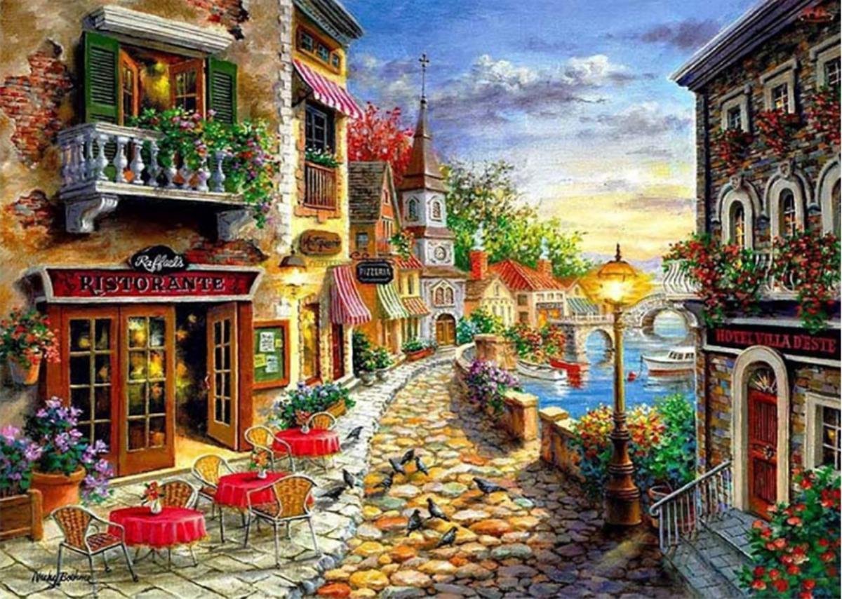 Delki® Haven Stad 3 Schilderen Op Nummer Volwassenen - 40x50 - Houten Penselen - Met Frame