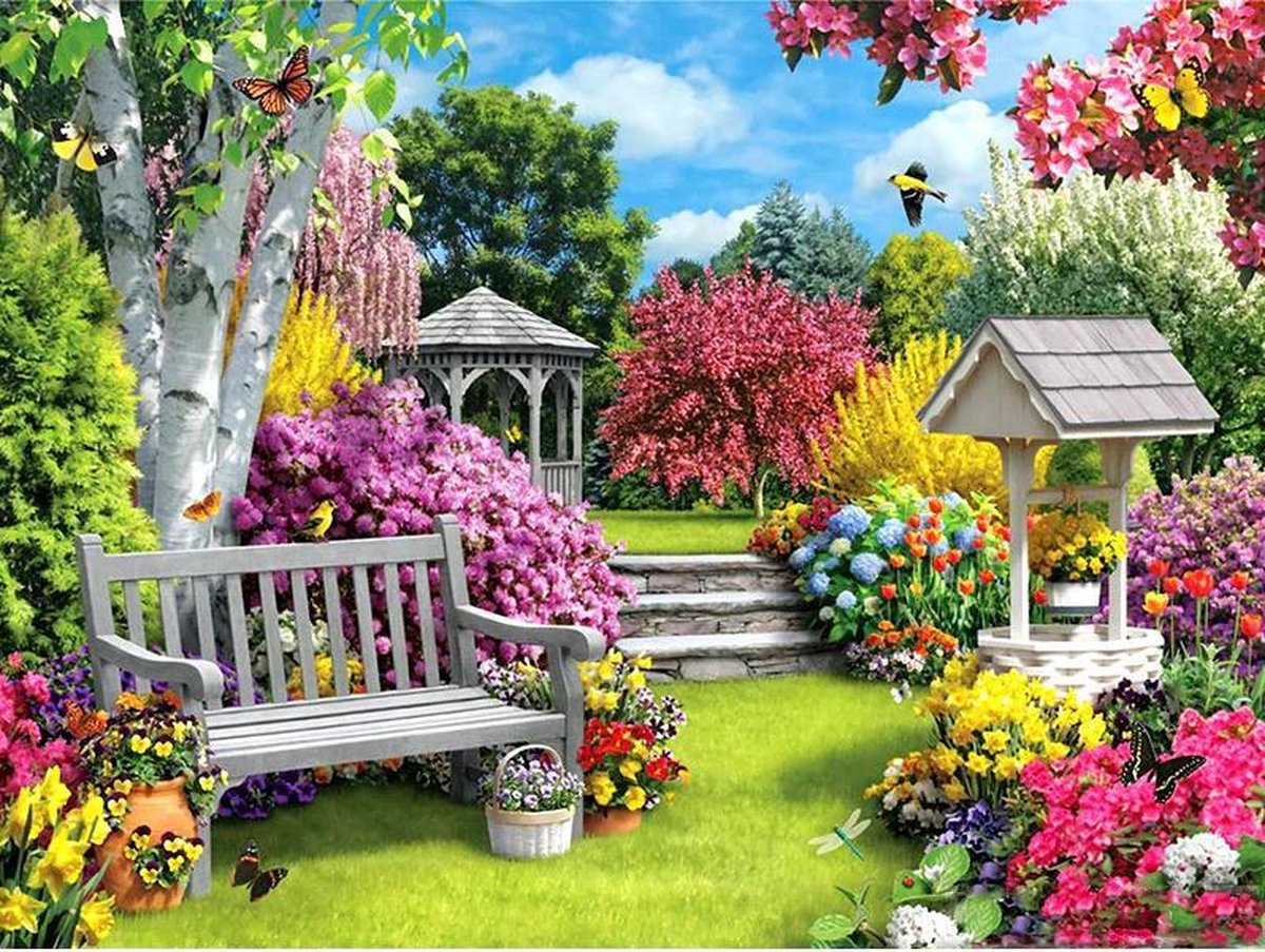 Delki® Landschap Tuin Schilderen Op Nummer Volwassenen - 40x50 - Houten Penselen - Inclusief Frame