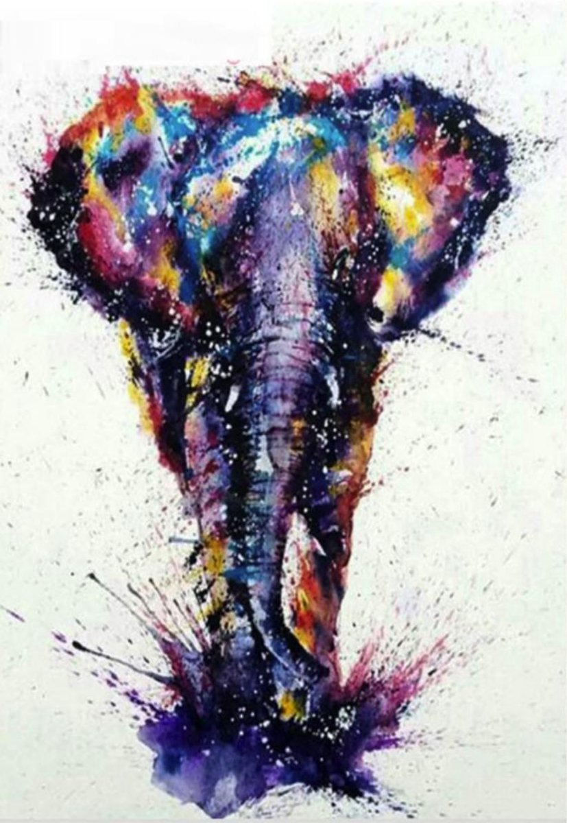 Delki® Olifant Met Veel Verschillende Kleuren Schilderen Op Nummer Volwassenen - 40x50 - Houten Penselen - Met Frame