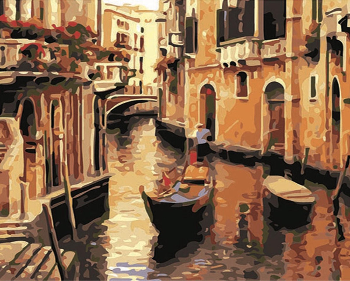 Delki® Venetie Schilderen Op Nummer Volwassenen - 40x50 cm - Houten Penselen - Met Frame