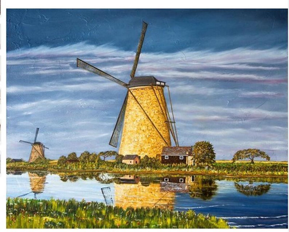 Delki® Windmolens Schilderen Op Nummer Volwassenen - 40x50 cm - Houten Penselen - Met Frame