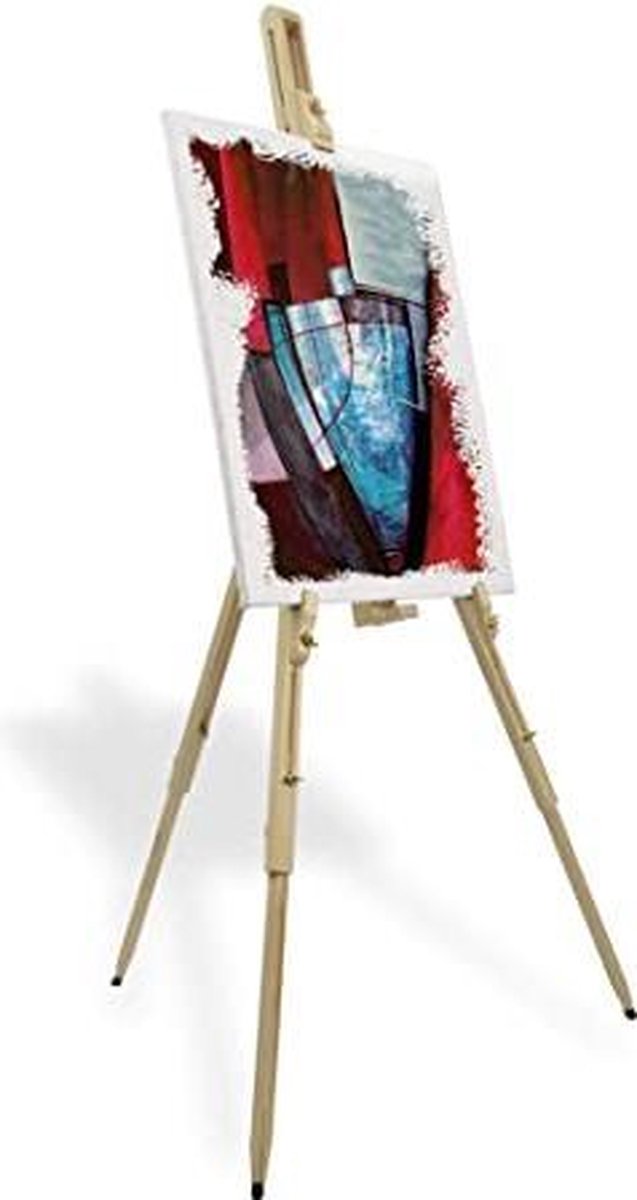 Veelzijdig genoeg om aan de behoeften van zowel olie- als aquarelkunstenaars te voldoen. De Tripod Easel biedt voldoende ruimte voor grootschalig werk en ondersteunt doeken tot een maximale hoogte van 43¼ Opgebouwd: circa 80x96x180cm Transportmaat : ca. 11x85x10 cm - Doekhoogte max. 110 cm Beenlengte max. Ongeveer 134 cm Hoogteverstelling: schroefbevestiging