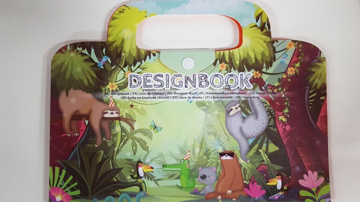 Leuk Designboek voor kinderen met het thema Luiaard. Met spelletjes, plaatsjes, vormpjes, kleurplaten, etc.