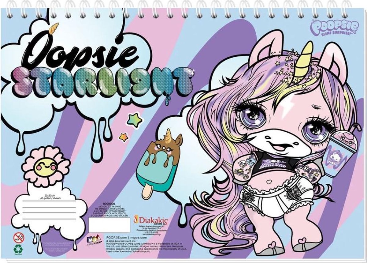 Diakakis Poopsie Starlight kleurboek Beleef veel knutselplezier met dit kleurboek! Ook leuk om mee op reis te nemen! Specificaties: Geslacht: meisjes Kleur: paars Materiaal: papier Afmetingen: 23 x 33 cm (LxB) Leeftijd: vanaf 4 jaar Inhoud: 1 Kleurboek 1 Stickervel 1 Liniaal