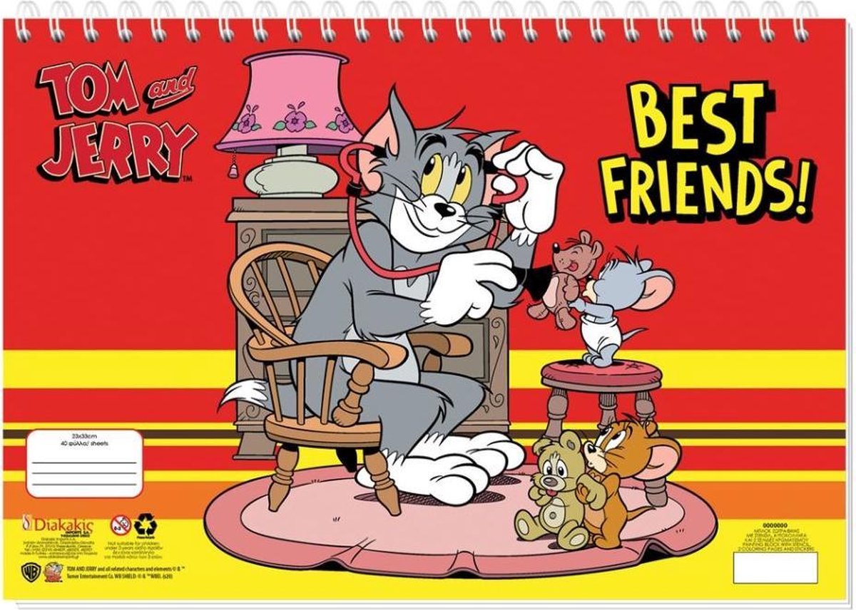 Diakakis Tom & Jerry kleurboek Beleef veel knutselplezier met dit kleurboek! Ook leuk om mee op reis te nemen! Specificaties: Geslacht: junior Kleur: rood Materiaal: papier Afmetingen: 23 x 33 cm (LxB) Leeftijd: vanaf 4 jaar Inhoud: 1 Kleurboek 1 Stickervel 1 Liniaal