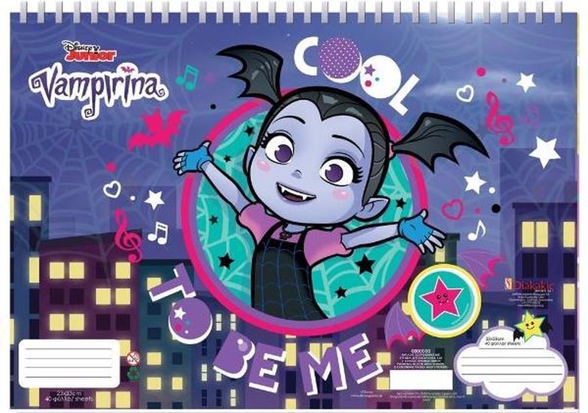 Diakakis Vampirina kleurboek Beleef veel knutselplezier met dit kleurboek! Ook leuk om mee op reis te nemen! Specificaties: Geslacht: junior Kleur: blauw Materiaal: papier Afmetingen: 23 x 33 cm (LxB) Leeftijd: vanaf 4 jaar Inhoud: 1 Kleurboek 1 Stickervel 1 Liniaal