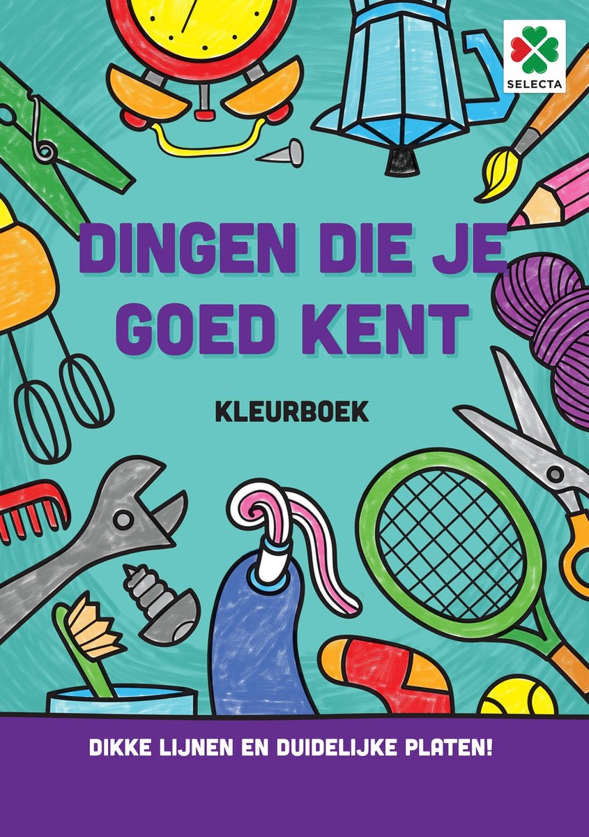 Dingen die je goed kent - Kleurboek Dit is een boek vol kleurplaten. Allemaal dingen die je kent of binnenkort leert kennen. Dingen en kleding die wachten op jouw kleuren! Dikke lijnen en duidelijke platen maken kleuren makkelijk en leuk om te doen voor zelfs de jongste kleur-enthousiastelingen. Aantal pagina's: 48 Samen spelen sinds 1933 Selecta is bekend als één van Nederlands langstbestaande speelgoedmerken. Al meer dan 80 jaar zijn wij gespecialiseerd in het ontwikkelen en uitbrengen van spellen en boeken voor alle leeftijden. Door deze jarenlange ervaring weten wij als geen ander hoe wij gezelligheid en plezier in de Nederlandse huiskamer kunnen brengen. Door de juiste balans tussen geluk en strategie staan onze producten garant voor urenlang speelplezier! Selecta: kwaliteit, creativiteit en gezelligheid.