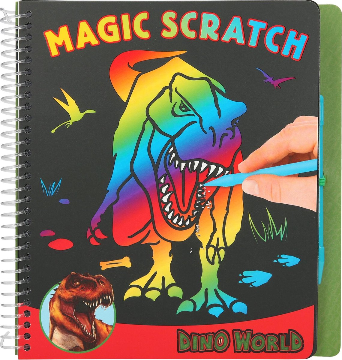 Word een dino-kraskunstenaar! Hoe? Met het Dino World Magic Scratch boek. Met de bijgeleverde kraspen kun je op de pagina's vol magische inkt de inkt wegkrassen en dan komen er prachtige kleuren tevoorschijn. Wordt elke keer weer verrast welke kleuren jouw dino krijgt. En met de handleiding en voorbeelden gaat het je zeker lukken!
