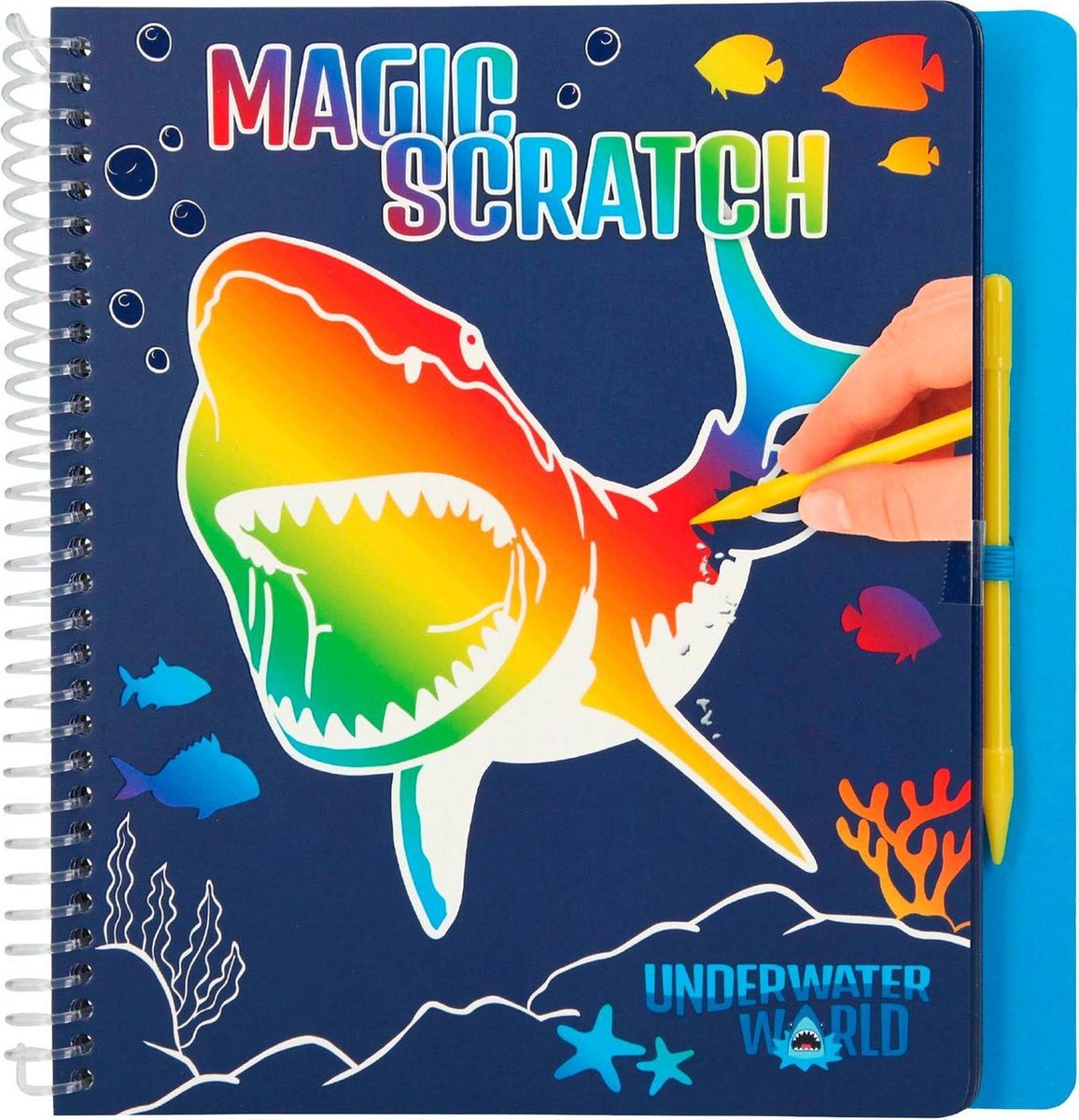 Ontdek alle geheimen van de zee - met magic scratch Underwater! Op 20 diepzeeblauwe pagina's kun je megacoole kraskunstwerken maken, want met elke "streek" komt er een fantastisch vuurwerk van kleuren tevoorschijn. Met eenvoudige krasvormen, coole handleiding en veel ruimte voor je eigen fantasie. Duik diep onder en beleef het zelf!
